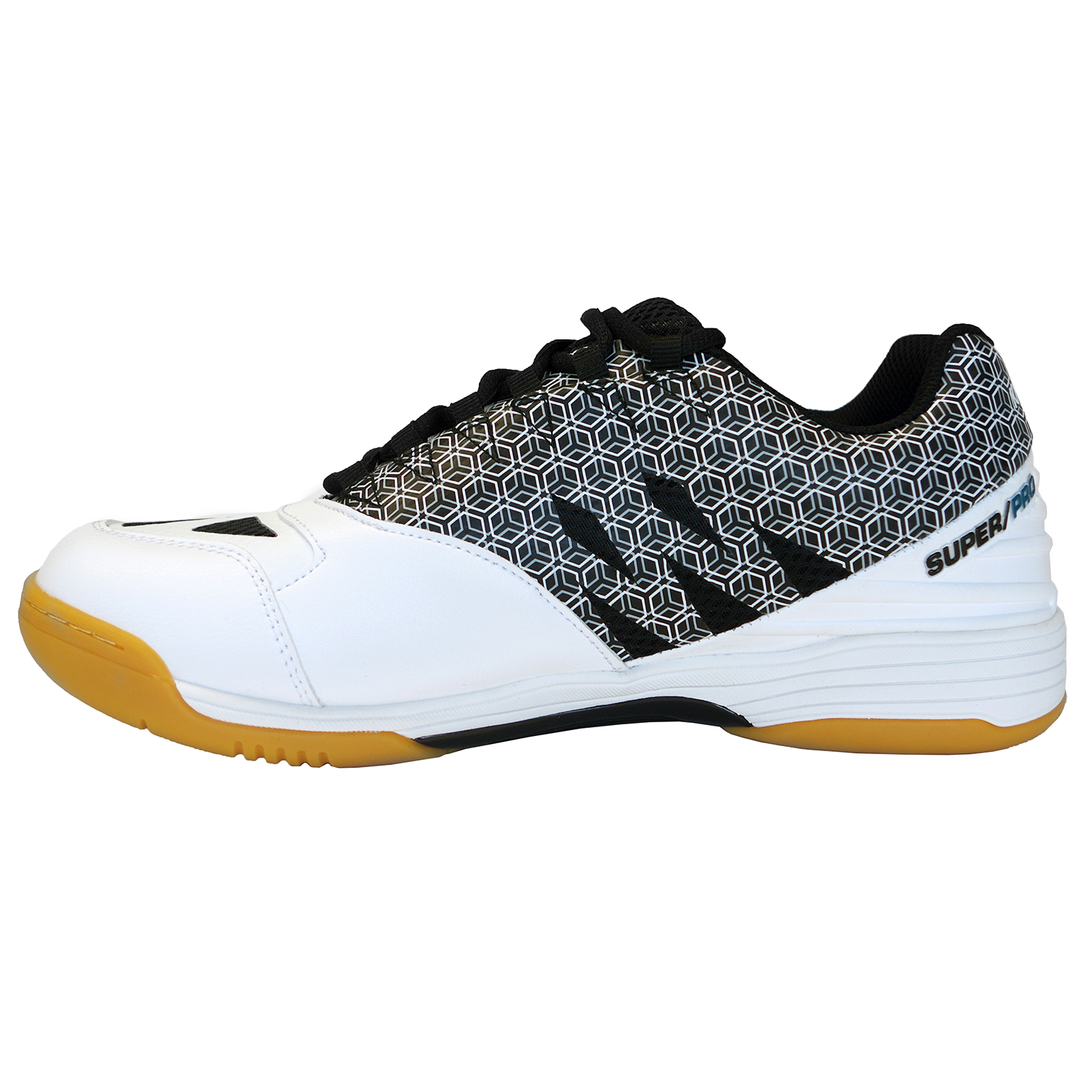 - SuperPro ma mocną cholewkę z mikrofibry ze stabilnością TPU, która zapewnia trwałość i strategiczne wsparcie dla stopy, a jednocześnie umożliwia przewiewność i wygodę podczas gry, aby spełnić oczekiwania graczy.
