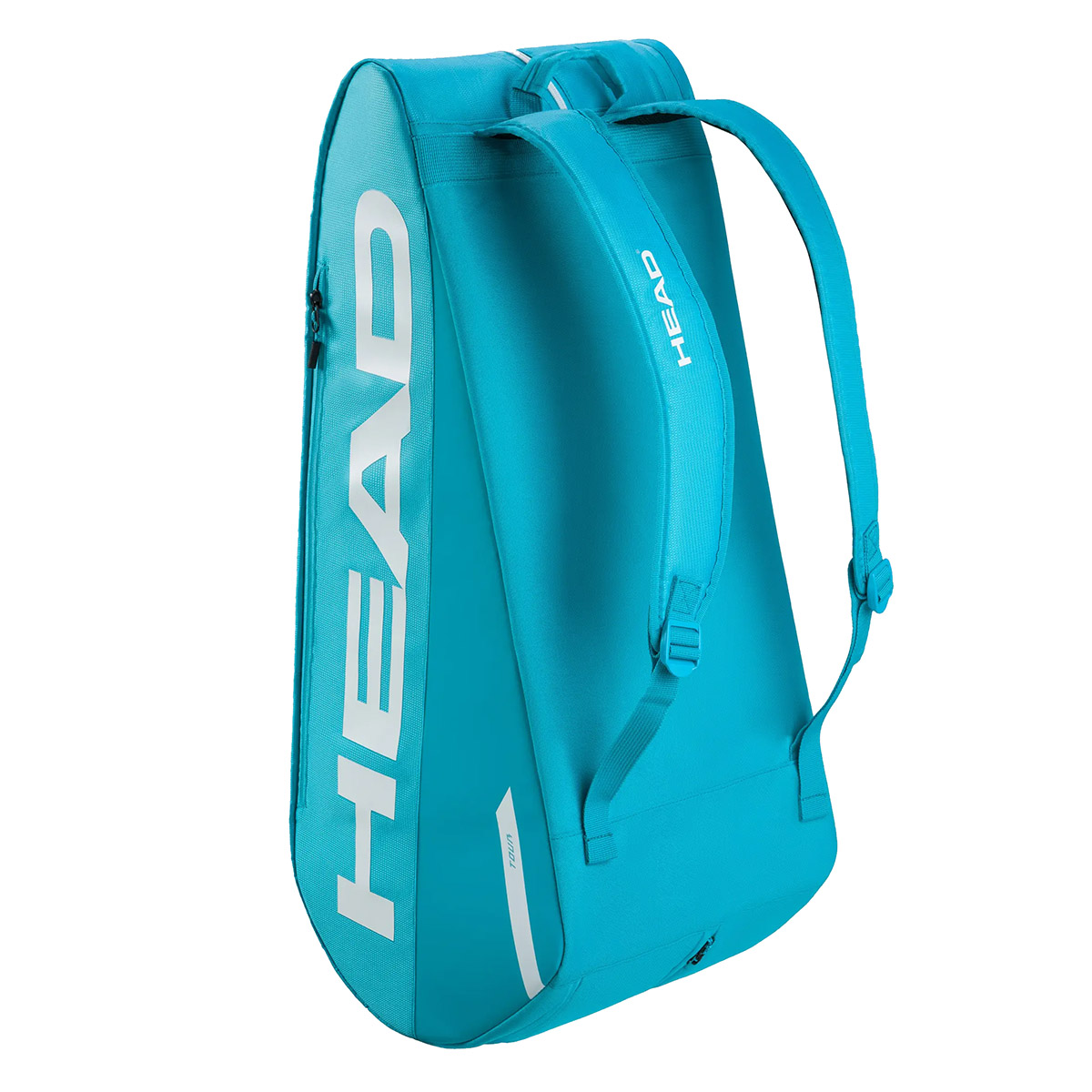 Spośród innych praktycznych rozwiązań warto wymienić zintegrowaną przegrodę na buty i zapinaną na zamek wewnętrzną kieszeń na akcesoria. Dzięki pasom ramiennym oraz górnym rączkom our Racquet Bag L oferuje różne sposoby noszenia: na ramieniu, na plecach lub w dłoni. Torba jest sprzedawana w opakowaniu z plastiku z recyklingu, a jej metkę wykonano z przetworzonego papieru i przywiązano ekologicznym sznurkiem konopnym — to przykład na to, jak HEAD stara się ograniczyć zużycie plastiku.