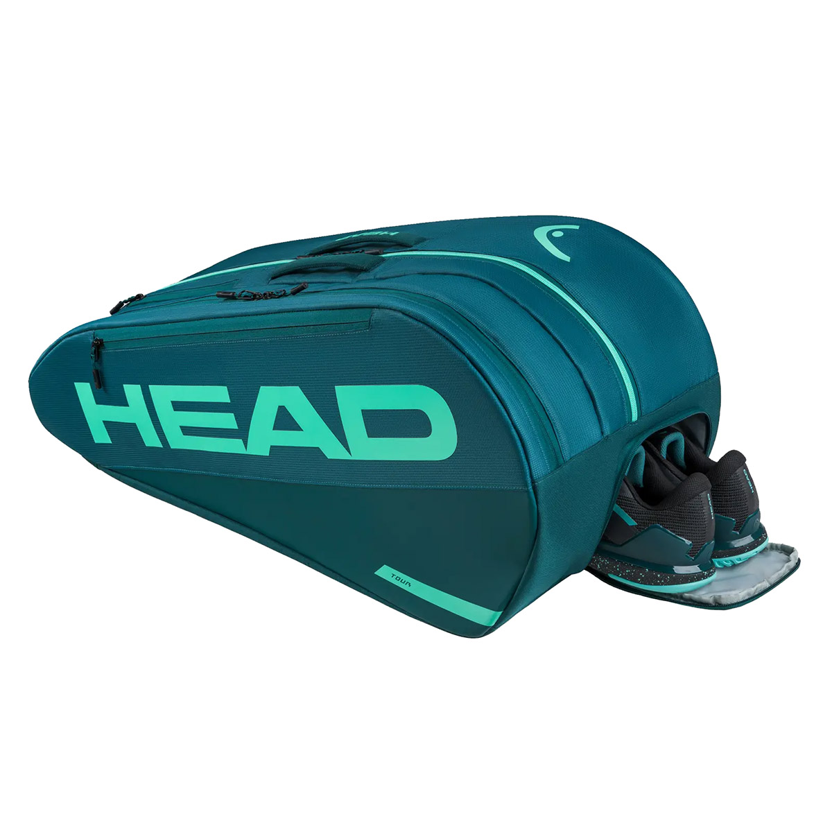 Spośród innych praktycznych rozwiązań warto wymienić zintegrowaną przegrodę na buty i zapinaną na zamek wewnętrzną kieszeń na akcesoria. Dzięki pasom ramiennym oraz górnym rączkom our Racquet Bag L oferuje różne sposoby noszenia: na ramieniu, na plecach lub w dłoni. Torba jest sprzedawana w opakowaniu z plastiku z recyklingu, a jej metkę wykonano z przetworzonego papieru i przywiązano ekologicznym sznurkiem konopnym — to przykład na to, jak HEAD stara się ograniczyć zużycie plastiku.