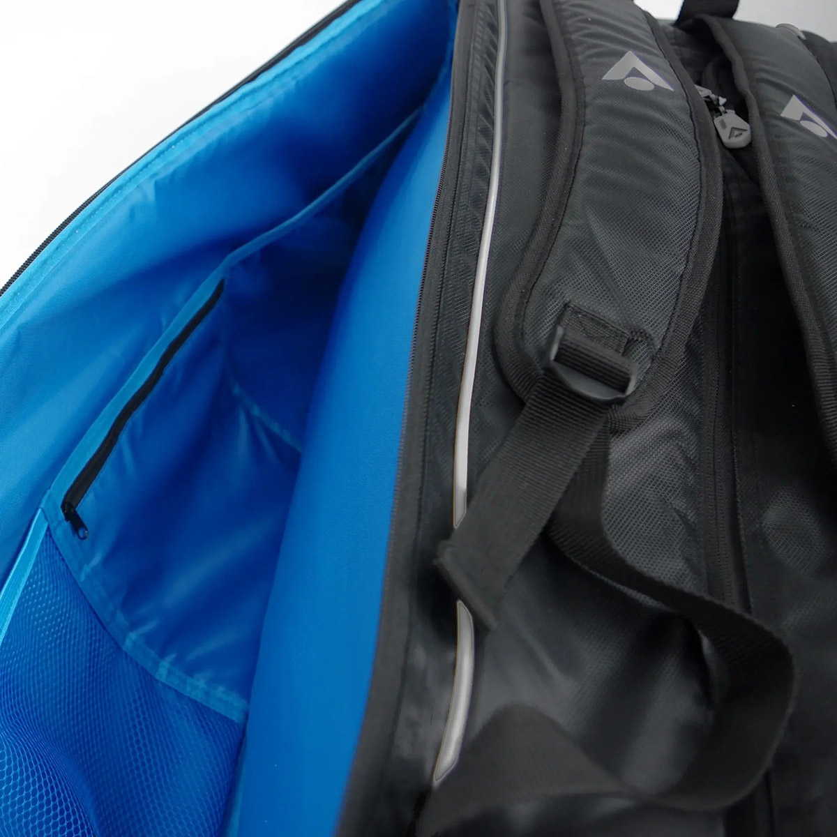 Torba turniejowa na 12 rakiet z najnowszej kolekcji od Karakala. Na środku torby jest główna obszerna kieszeń z organizerem, zaś dwie boczne przeznaczone są na rakiety. Na końcu torby znajduje się wentylowana kieszeń na buty.