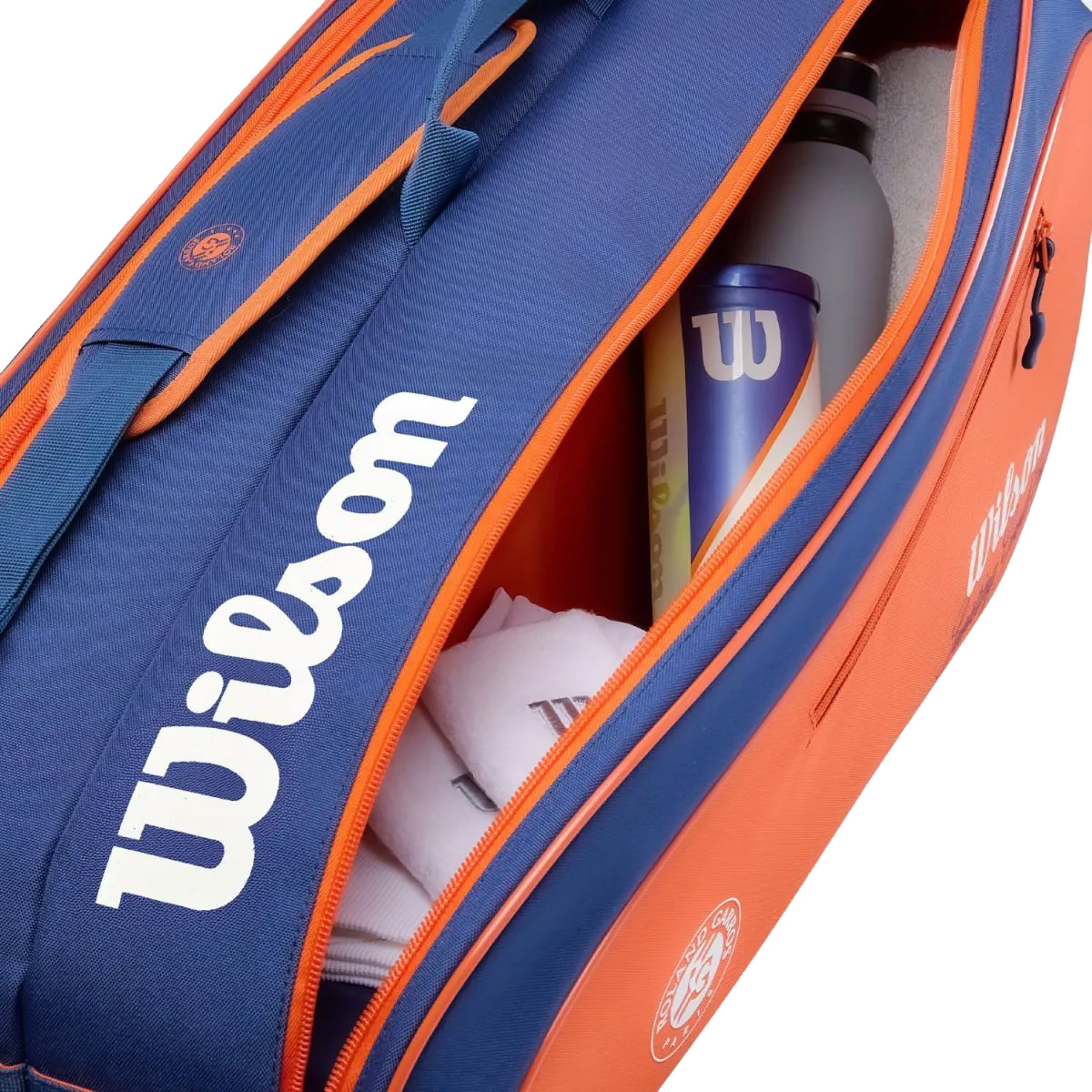Kolekcja Wilson oland Garros Team 2026 łączy przydatne funkcje ze stylem inspirowanym szczytem sezonu tenisowego na kortach ziemnych. Zrobiona z drobno tkanego poliestru dwukomorowa torba, mieści do sześciu rakiet oraz wyposażona jest w duże zewnętrzne kieszenie dla dodatkowej przestrzeni do przechowywania akcesoriów i drobiazgów.